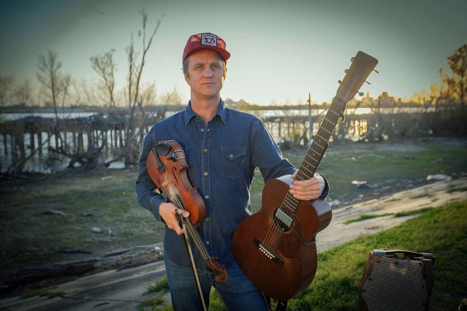 ” He rang in the Mardi Gras season as king of the Krewe of Joan of Arc, then entered his second year performing with Louis Michot & SWAMP MAGIC, a four-piece band featuring Michot on fiddle, accordion, guitar, and vocals; Evan Ceaser on drums; the Ramblers’ Jonny Campos on pedal steel; and Bryan Webre on bass, synths, and samples. Rêve du Troubadour, Michot’s solo debut, released in 2023, includes special guests: Nigerien Tuareg guitarist Bombino and critically acclaimed singer and multi-instrumentalist Leyla McCalla. He began work on the album by tracking original songs in his dry-docked houseboat, Sister Ray, during lockdown. Recording was completed at Mark Bingham’s Piety Studio, engineered and mixed by the Ramblers’ Kirkland Middleton. In 2021, Michot faced the unique challenge of trying to perform live during a pandemic, while also leading hurricane-relief efforts (covered in a Rolling Stone article, “Can This Cajun-Punk Musician Protect His Culture From Climate Change?”) and raised funds to provide solar panels and generators to homes in rural Louisiana after Hurricane Ida (covered in The New Yorker’s “The Lost Bayou Ramblers Get Lit”).